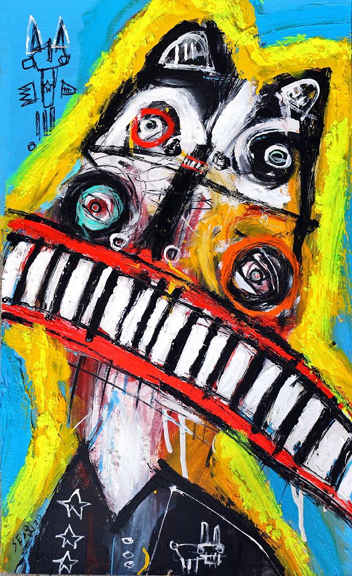 "Space Invader" acrylic/mix on stretched canvas 30" x 40" *SOLD email sesow@sesow.com to reserve/ask about purchasing. please include url and description. |