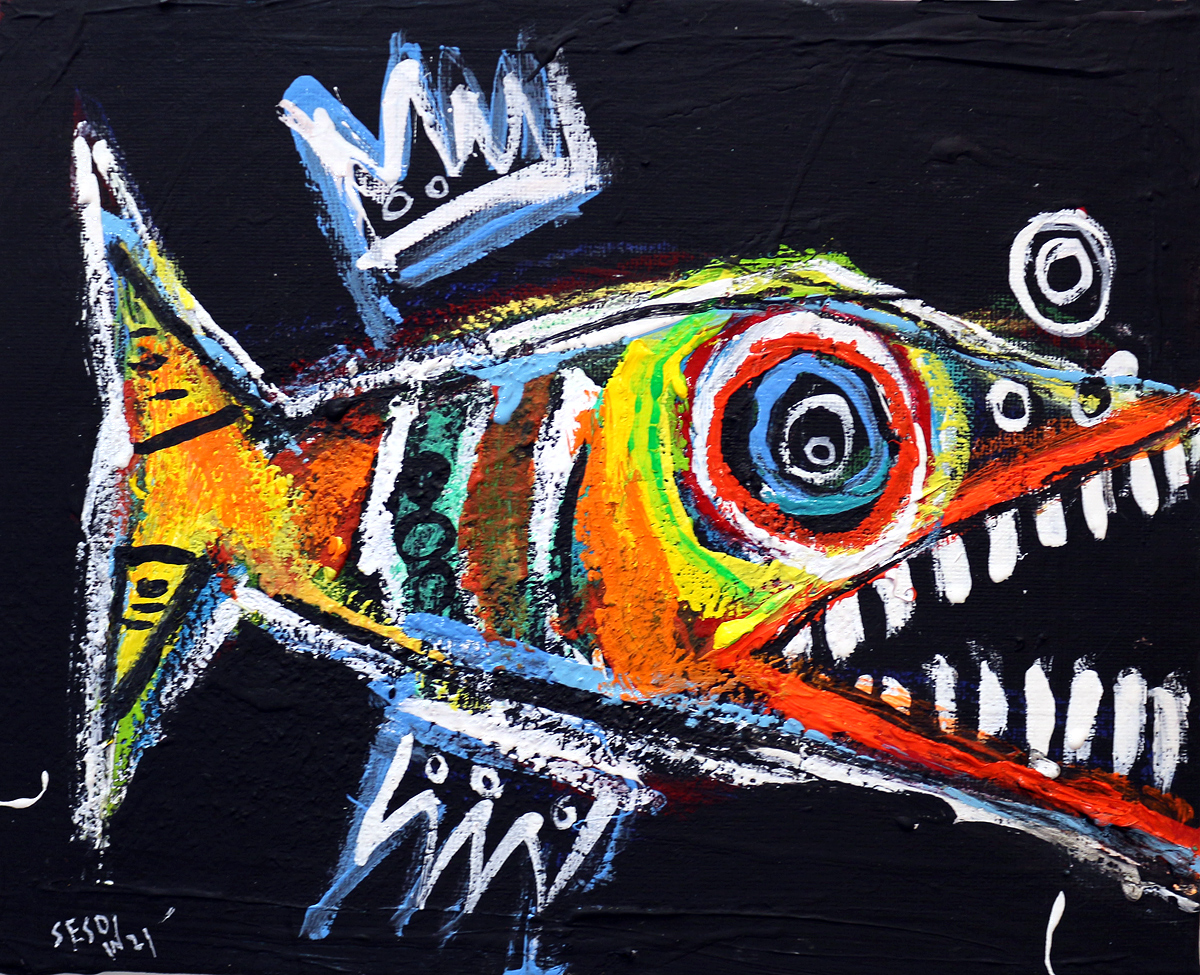 "Big Fish" oil/acrylic on canvasboard 8" x 10" *SOLD email sesow@sesow.com to reserve/ask about purchasing. please include url and description. |