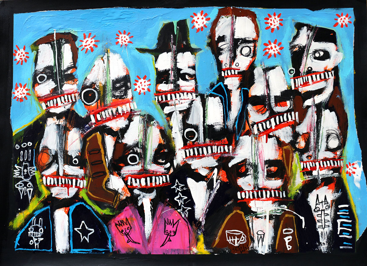 "Group Photo (super spreaders)" acrylic/mix/tape on watercolor paper approx. 30" x 22"" *SOLD email sesow@sesow.com to reserve/ask about purchasing. please include url and description. |