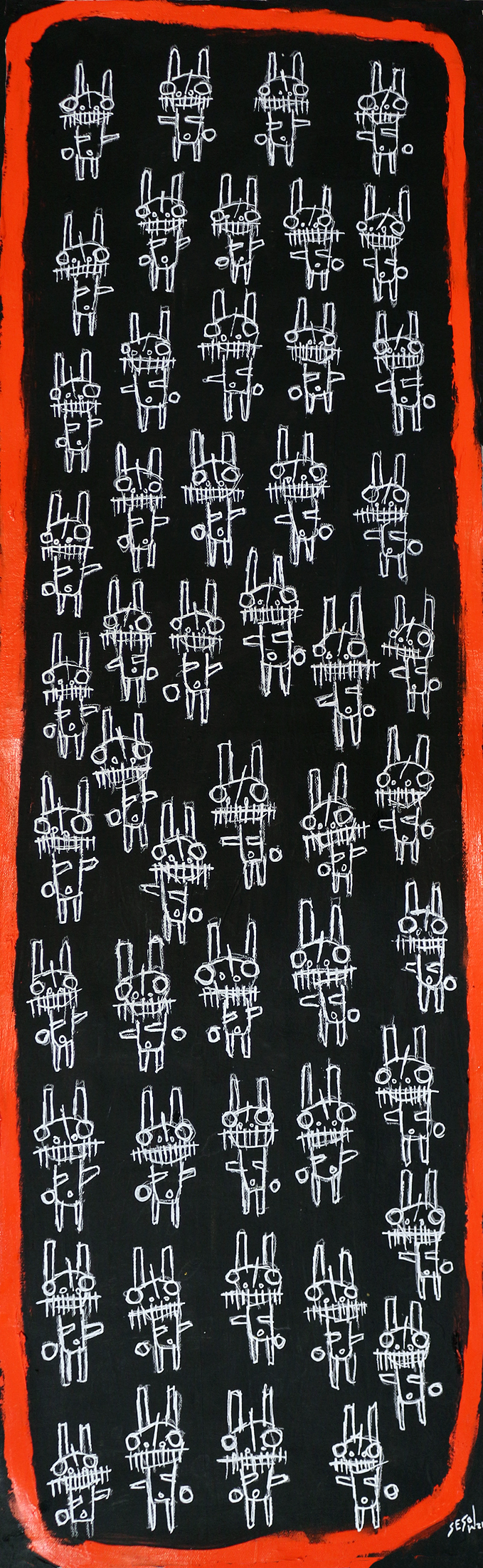 "Bunnies (A Colony of Rabbits)" acrylic/mix on unstretched canvas 10.5" x 34" *SOLD email sesow@sesow.com to reserve/ask about purchasing. please include url and description. |