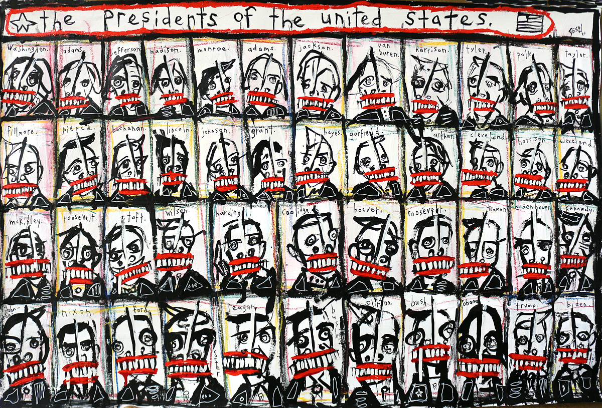 "The Presidents" acrylic/mix on paper 30" x 25" *SOLD email sesow@sesow.com to reserve/ask about purchasing. please include url and description. |