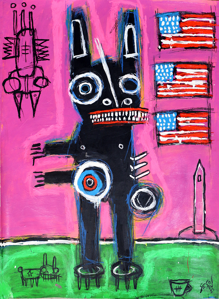 "The American Bunny" acrylic/mix/oil on watercolor paper approx. 30" x 22"" *SOLD email sesow@sesow.com to reserve/ask about purchasing. please include url and description. |