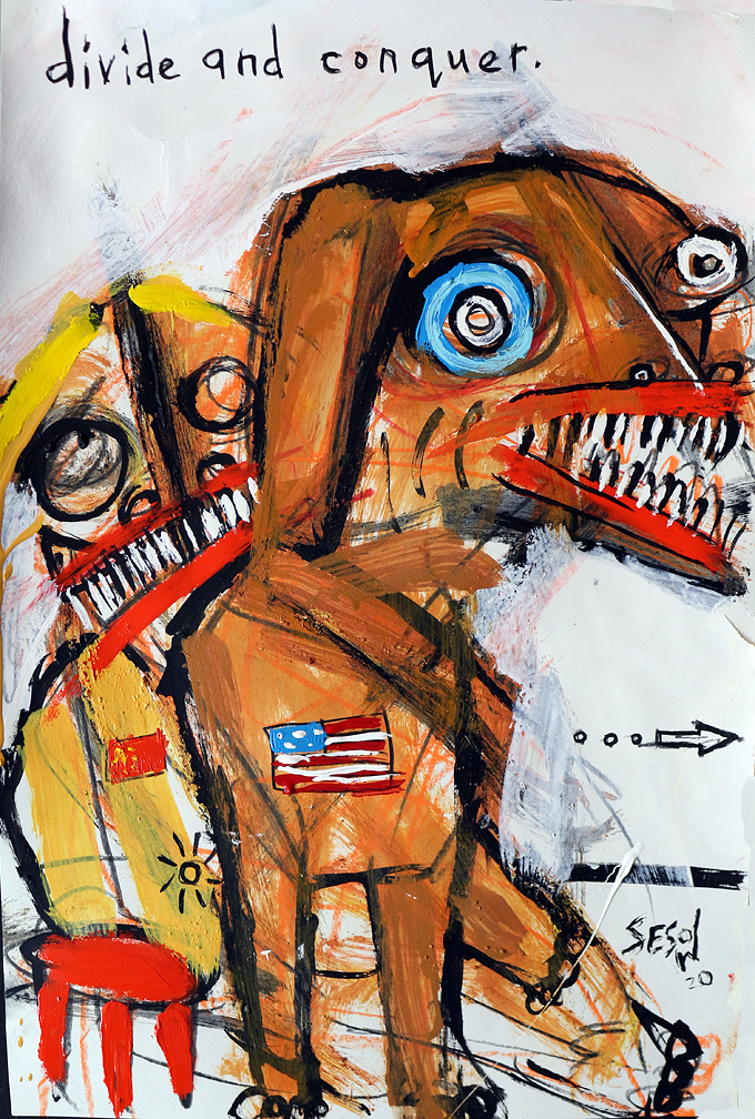 "Divide and Conquer" acrylic/mix on paper 12" x 18" *SOLD email sesow@sesow.com to reserve/ask about purchasing. please include url and description. |