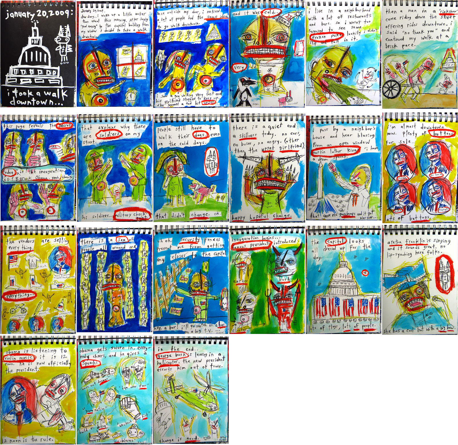 "Obama Inauguration Sketchbook" 20 pages, 10" x 7" watercolor/mix on watercolor paper in book *SOLD |
