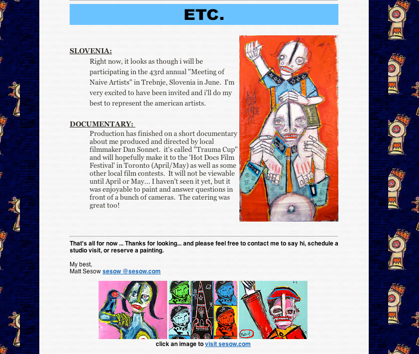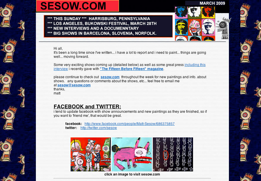 To add matt sesow to your 'friends' on FACEBOOK, please visit http://www.facebook.com/people/Matt-Sesow/686375857