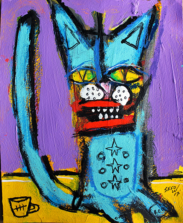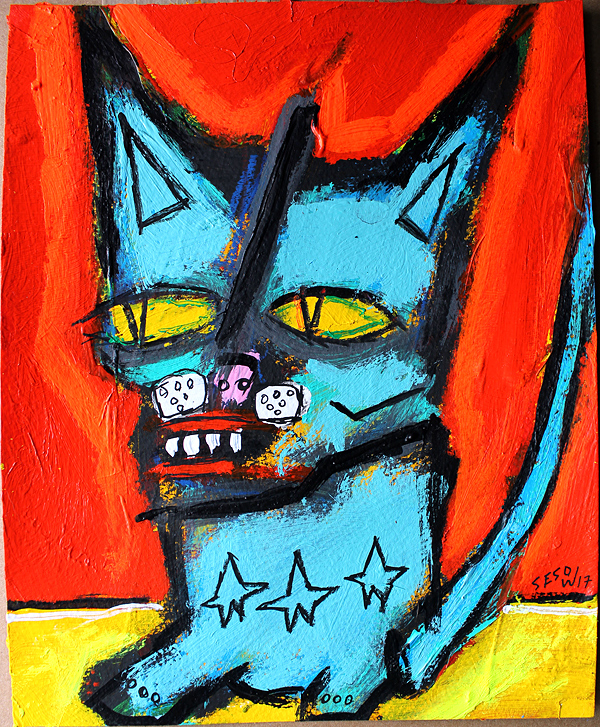 "3-star kitty" acrylic on archival paper 8" x 10" *SOLD email sesow@sesow.com to reserve/ask about purchasing. please include url and description. |