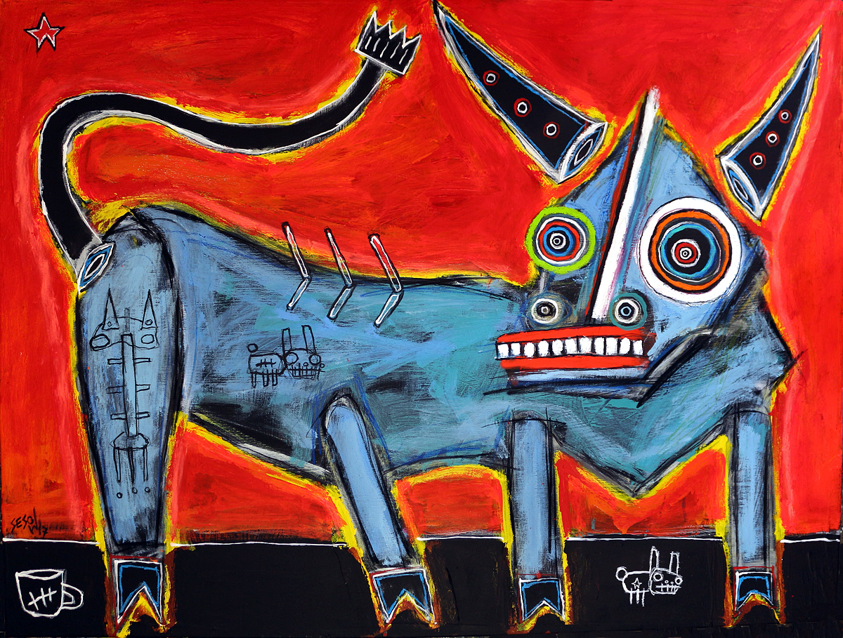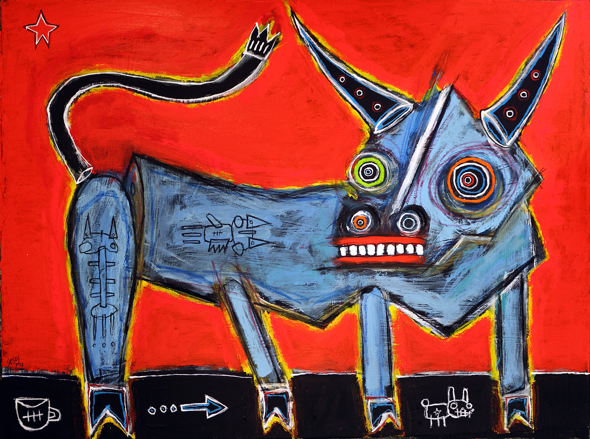 "Blue Bull" acrylic/mix on stretched canvas 30" x 40" *SOLD email sesow@sesow.com to reserve/ask about purchasing. please include url and description. |