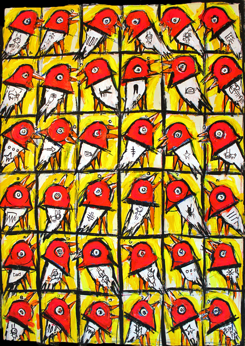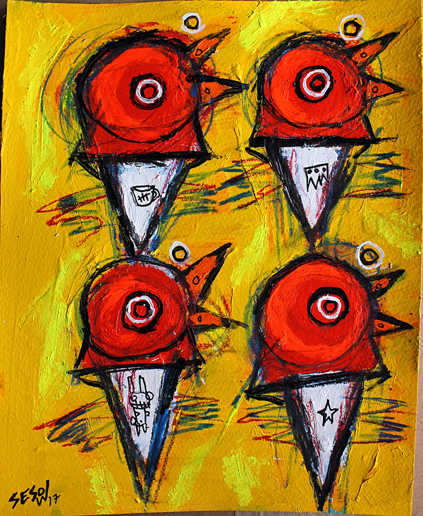 "Birds of a Feather" acrylic/mix on archival paper 40" x 28" *SOLD email sesow@sesow.com to reserve/ask about purchasing. please include url and description. |