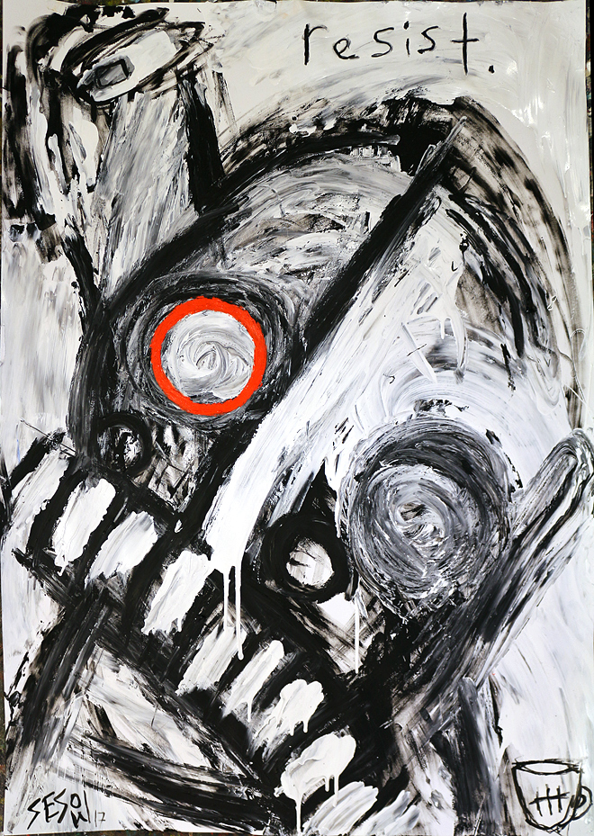 "Resist" acrylic on archival paper 40" x 28" $240 email sesow@sesow.com to reserve/ask about purchasing. please include url and description. |