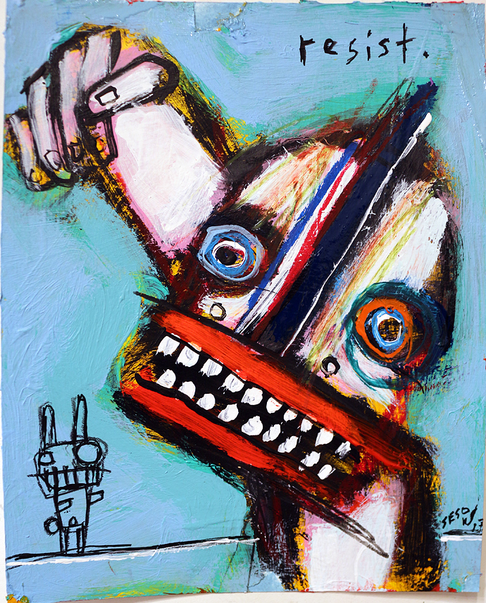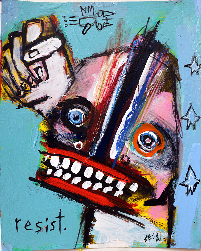 "The Resist" acrylic on archival paper 8" x 10" *SOLD email sesow@sesow.com to reserve/ask about purchasing. please include url and description. |