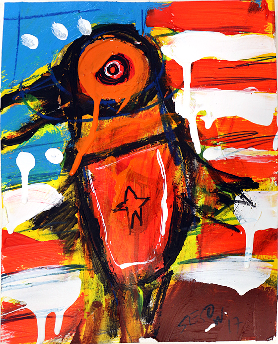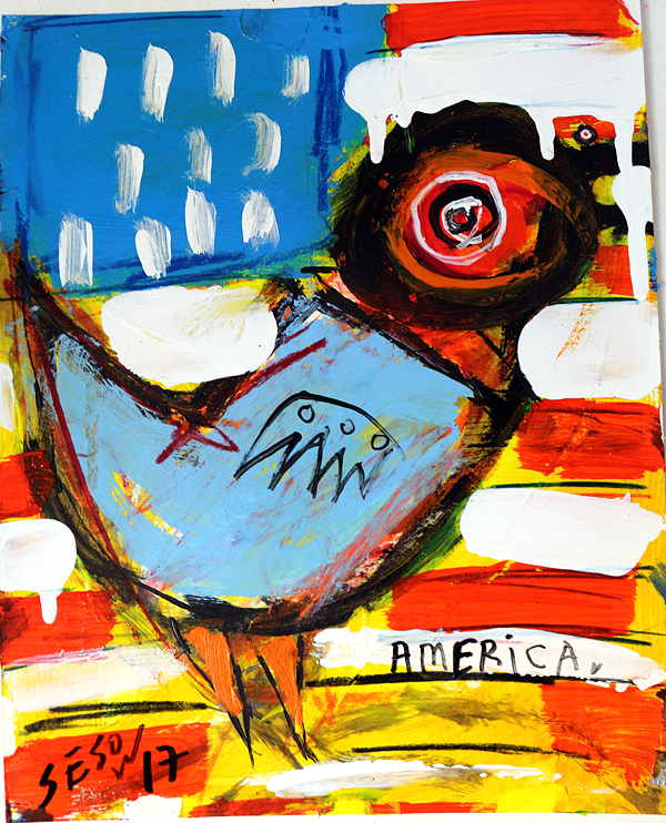"America Bird" acrylic on archival paper 8" x 10" *SOLD email sesow@sesow.com to reserve/ask about purchasing. please include url and description. |