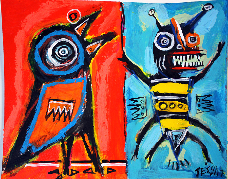 "Star Bird" acrylic on archival paper 8" x 10" *SOLD email sesow@sesow.com to reserve/ask about purchasing. please include url and description. |