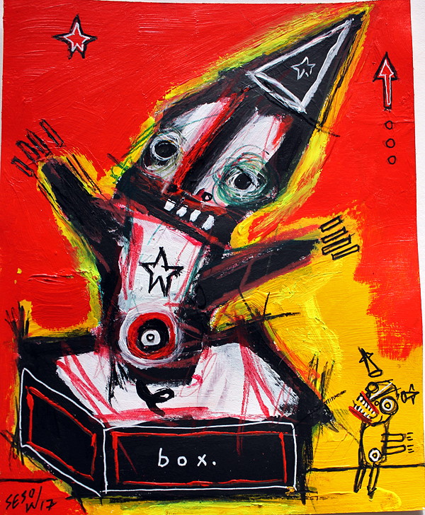 "Jack-in-the-box" acrylic on archival paper 8" x 10" *SOLD email sesow@sesow.com to reserve/ask about purchasing. please include url and description. |