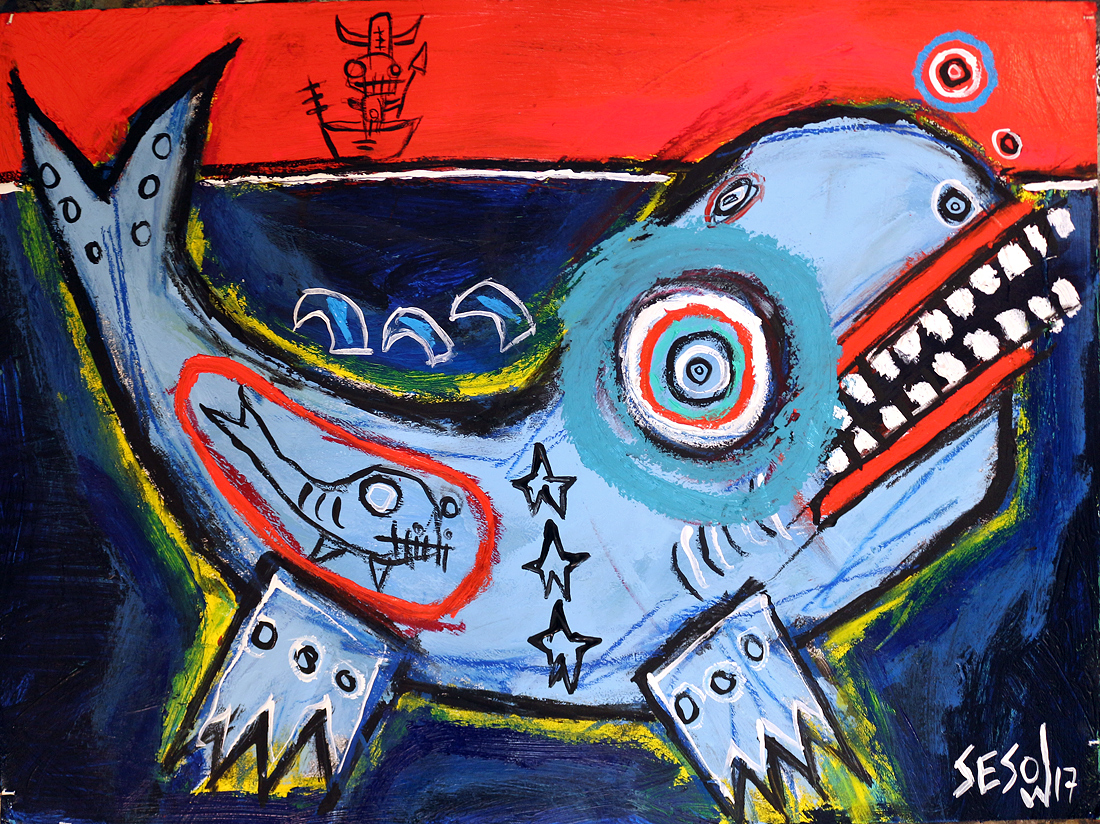 "Smiling Whale" acrylic/mix on archival watercolor board 20" x 15" *SOLD email sesow@sesow.com to reserve/ask about purchasing. please include url and description. |