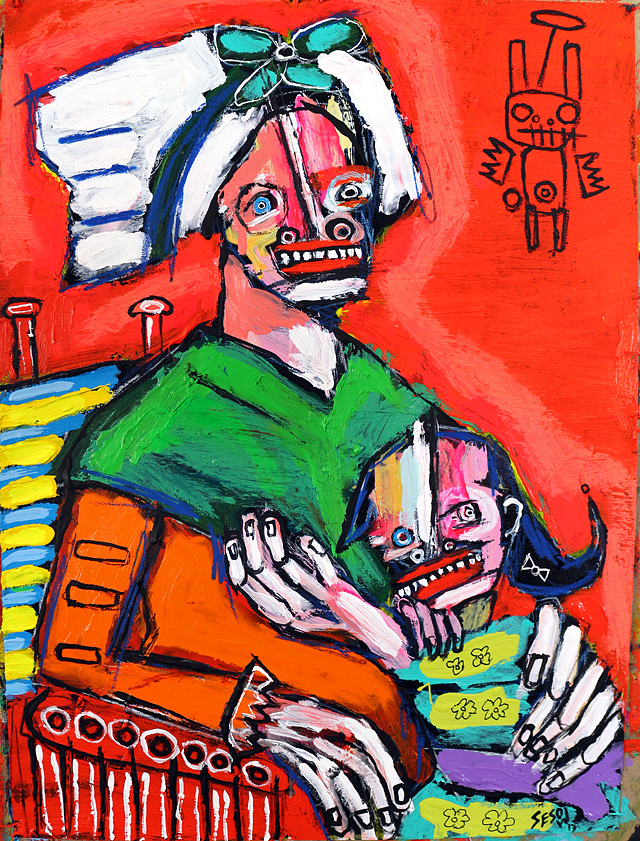 "Mother and Child" acrylic/mix on archival watercolor board 20" x 15" *SOLD email sesow@sesow.com to reserve/ask about purchasing. please include url and description. |