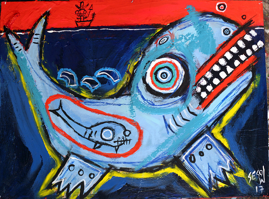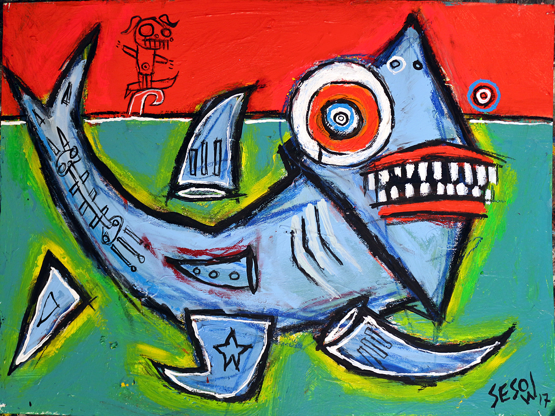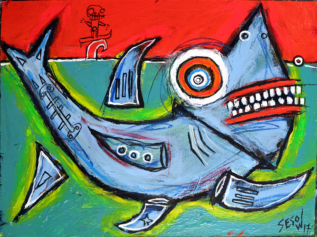 "Shark" acrylic/mix on archival watercolor board 20" x 15" *SOLD email sesow@sesow.com to reserve/ask about purchasing. please include url and description. |