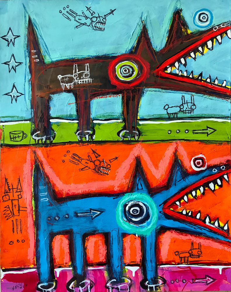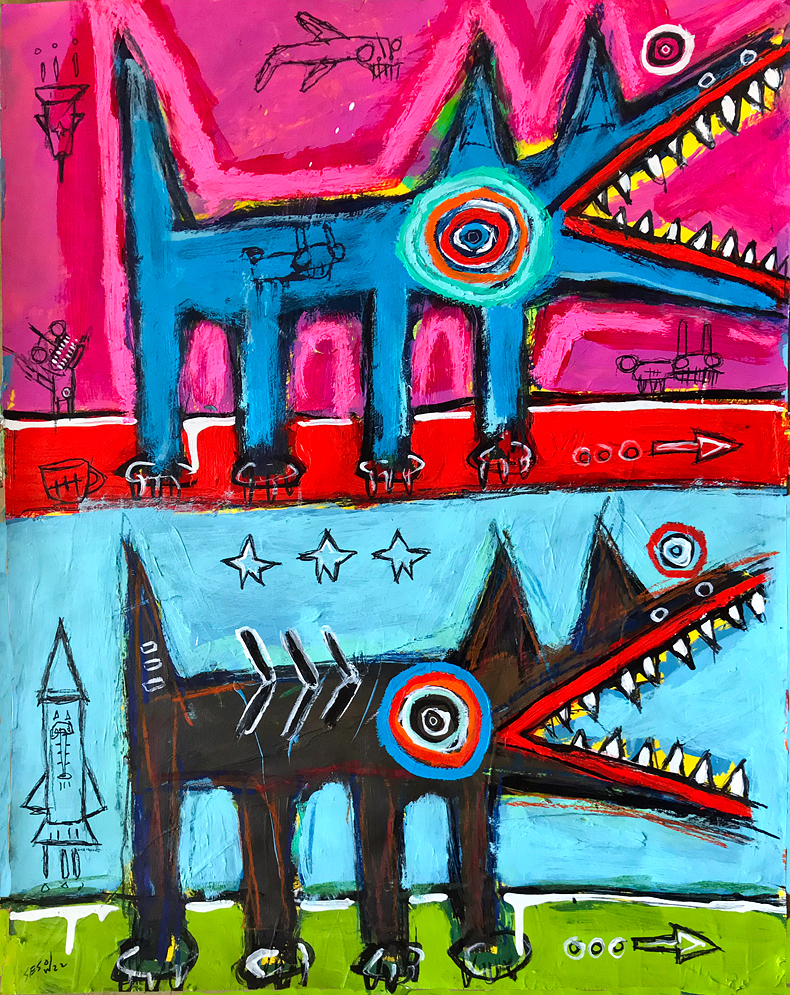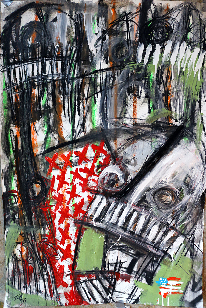 "War Dogs" acrylic/mix on bristol paper 24" x 18" *SOLD email sesow@sesow.com to reserve/ask about purchasing. please include url and description. |