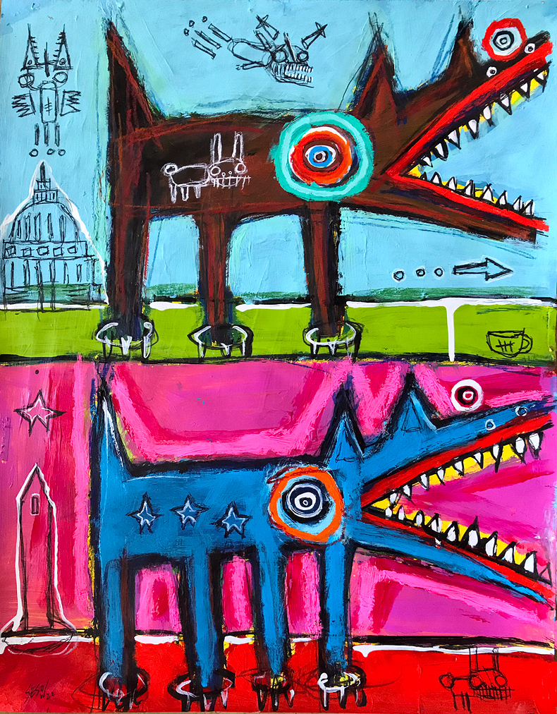 "Washington DC Dogs" acrylic/mix on bristol paper 24" x 18" *SOLD email sesow@sesow.com to reserve/ask about purchasing. please include url and description. |
