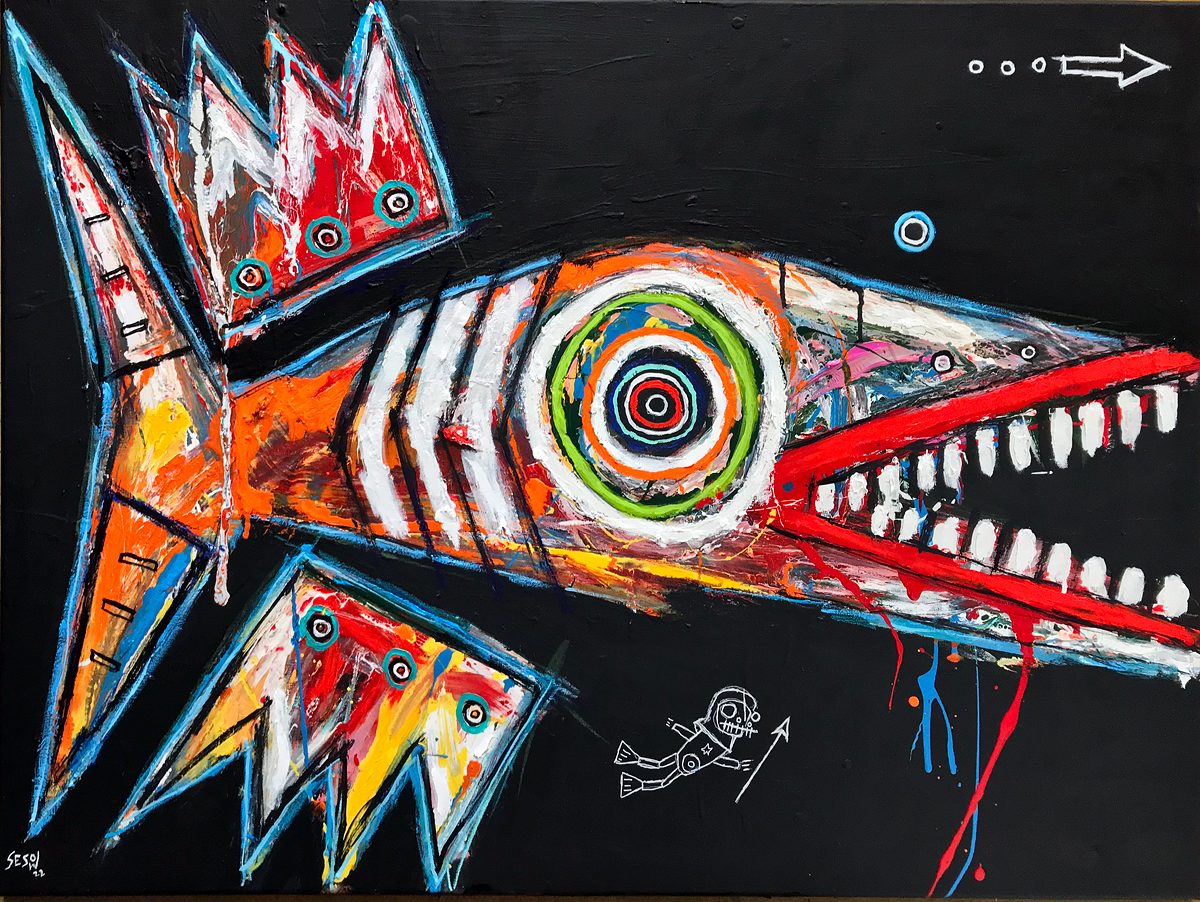 "Fresh Fish" acrylic/oil on stretched canvas 30" x 40" *SOLD email sesow@sesow.com to reserve/ask about purchasing. please include url and description. |