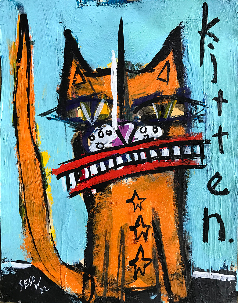 "Kitten" acrylic/oil on archival paper 8" x 10" *SOLD email sesow@sesow.com to reserve/ask about purchasing. please include url and description. |