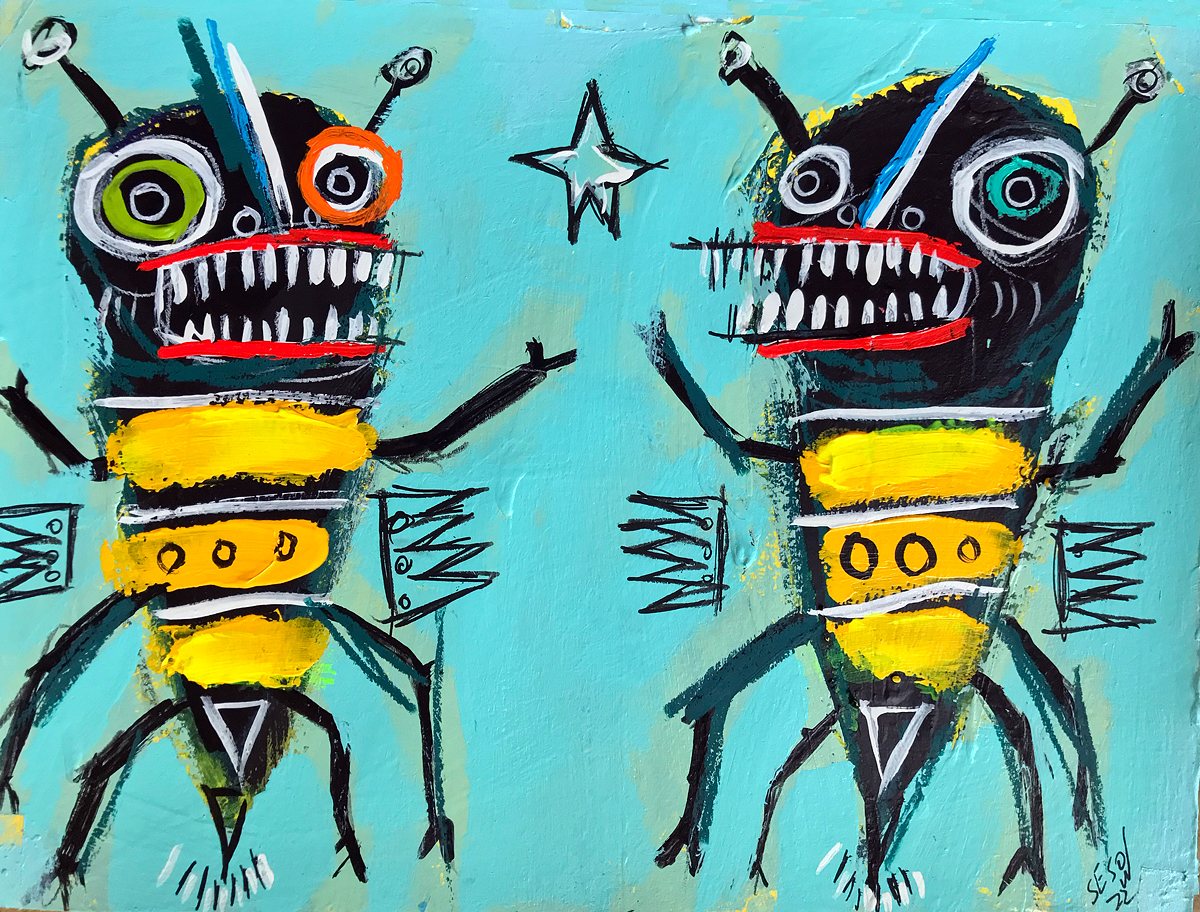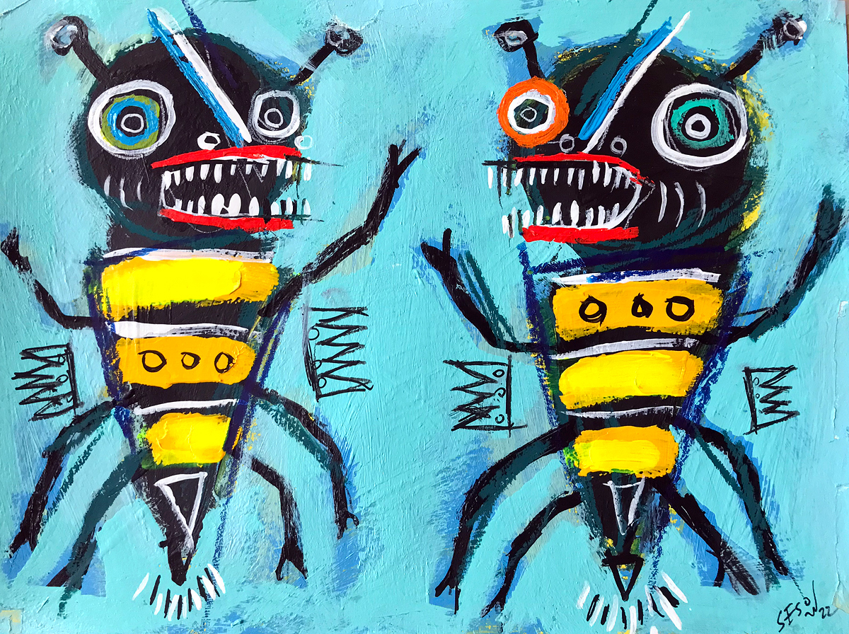 "Two Bees" acrylic/ mix on watercolor paper 9" x 12" *SOLD email sesow@sesow.com to reserve/ask about purchasing. please include url and description. |