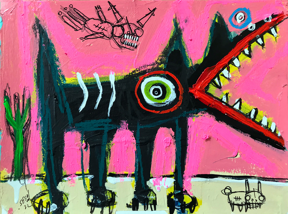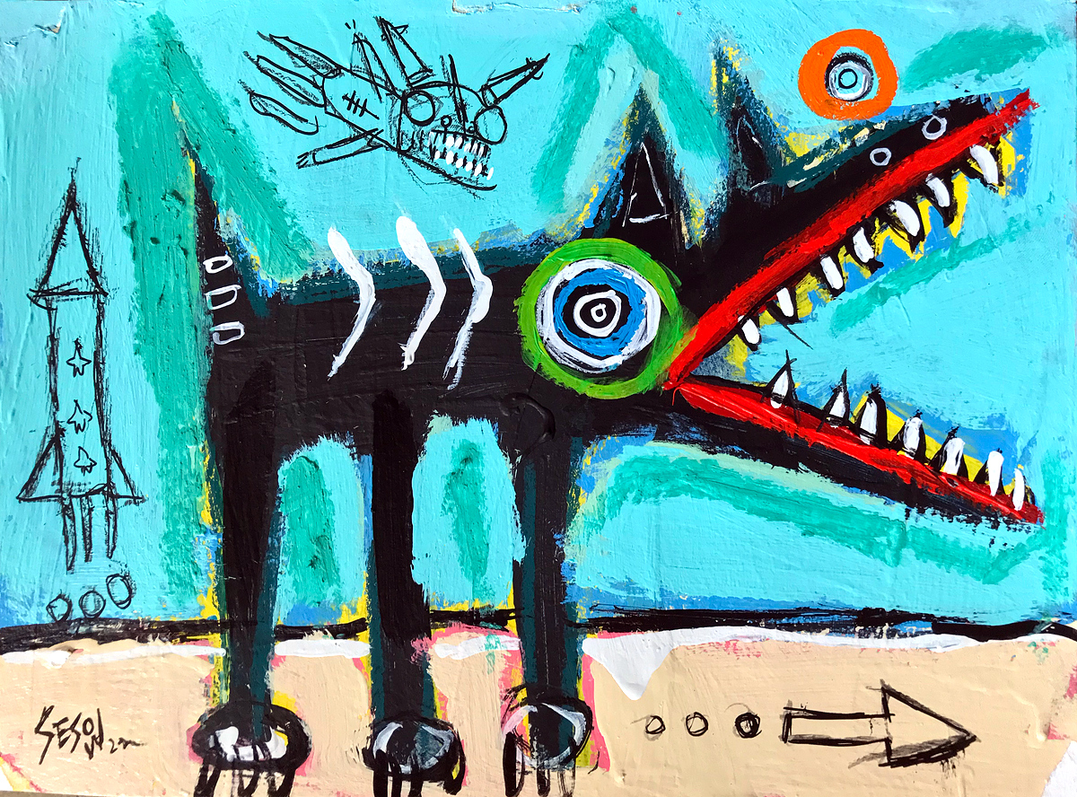 "Desert Dog" acrylic/ mix on watercolor paper 9" x 12" *SOLD email sesow@sesow.com to reserve/ask about purchasing. please include url and description. |