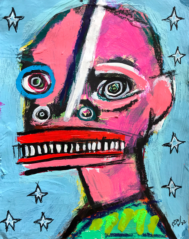"Starry-eyed" acrylic/mix on watercolor paper 8" x 10" *SOLD email sesow@sesow.com to reserve/ask about purchasing. please include url and description. |
