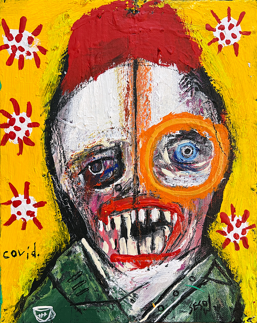"COVID" oil/mixed material on canvasboard 8" x 10" *SOLD email sesow@sesow.com to reserve/purchase. |