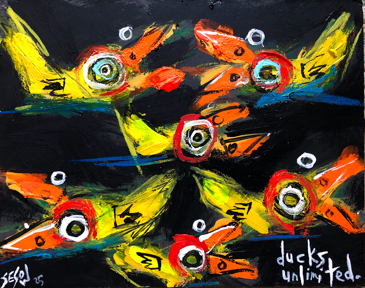 "Ducks Unlimited" acrylic/mix on matboard 12" x 6.5" *SOLD email sesow@sesow.com to reserve/ask about purchasing. please include url and description. |
