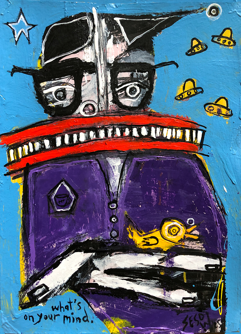 "What's on your mind"" acrylic/mix on thick watercolor paper 11" x 15" *SOLD email sesow@sesow.com to reserve/ask about purchasing. please include url and description. |