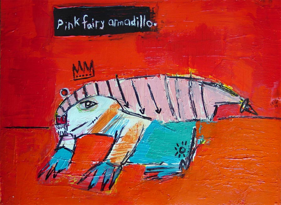 "Pink fairy armadillo (Chlamyphorus truncatus)" 9" x 12" acrylic/mixed on bristol paper *SOLD