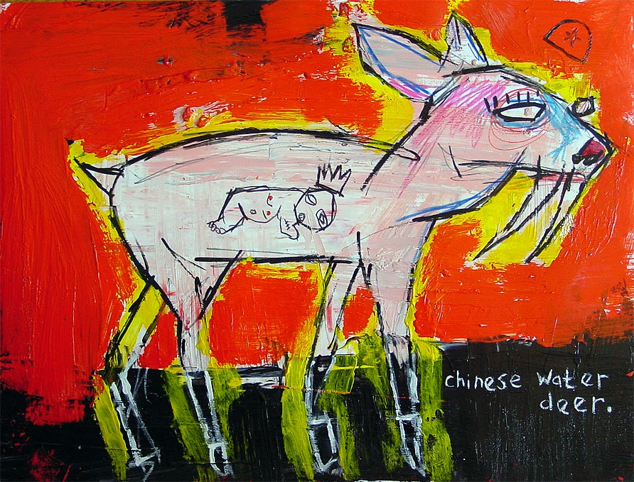 "Chinese water deer (Hydropotes inermis)" 9" x 12" acrylic/mixed on bristol paper *SOLD