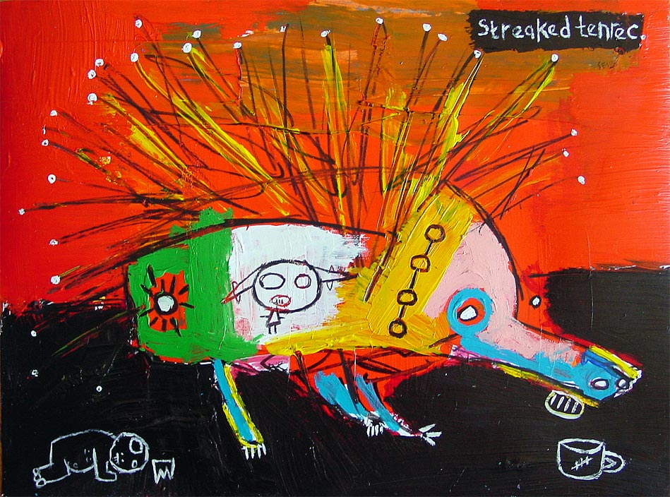 "Streaked tenrec (Hemicentetes semispinosus)" 9" x 12" acrylic/mixed on bristol paper *SOLD