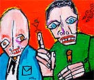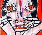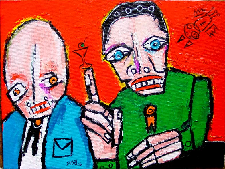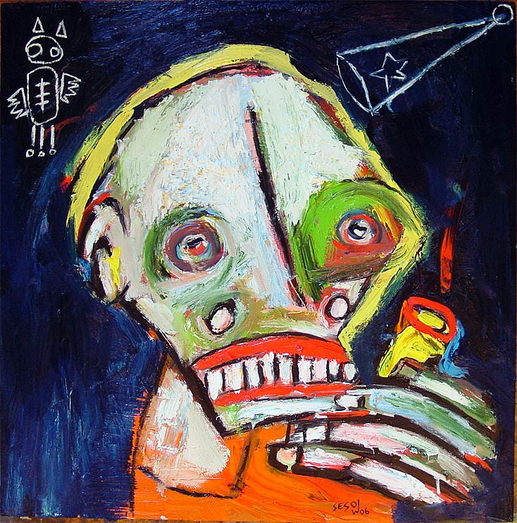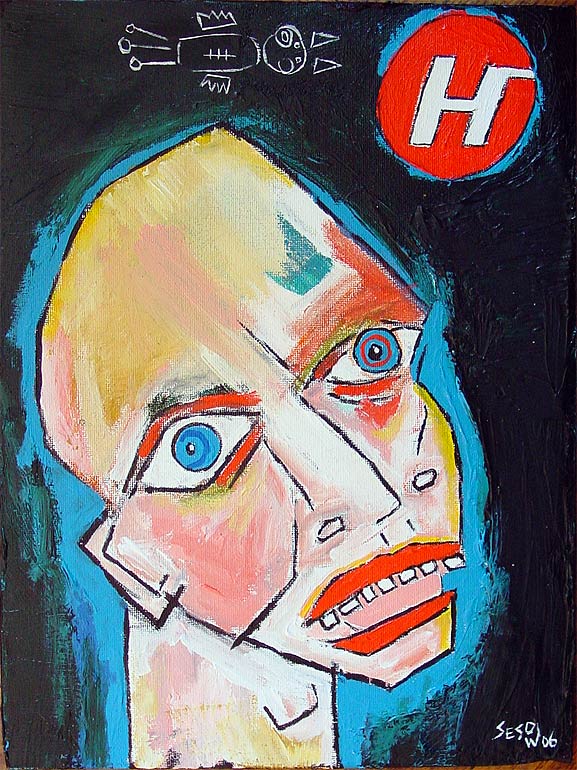"Einstein, with pipe (accompanied by rising phoenix and thinking cap)" 24" x 24"" oil on stretched canvas *SOLD click here to reserve/inquire |
