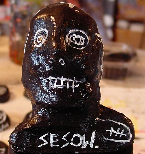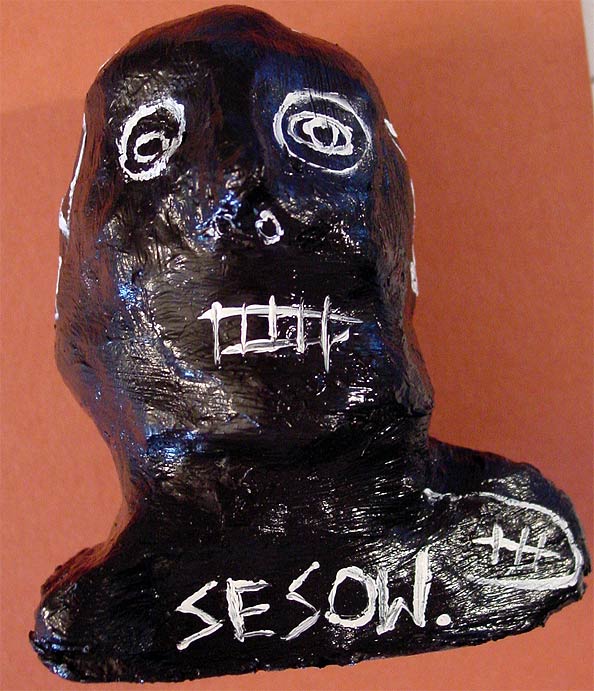 Sesow kitty litter bust approx 4" x 4" bust acrylic on clumping cat litter (with DC water) established may 2006 another view #1 another view #2 *SOLD click here to reserve/inquire |