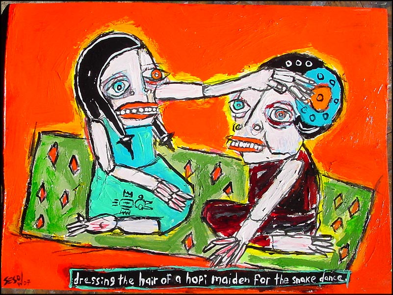 "Dressing the Hair of a Hopi Maiden" 9" x 12" acrylic/mixed on bristol paper *SOLD |
