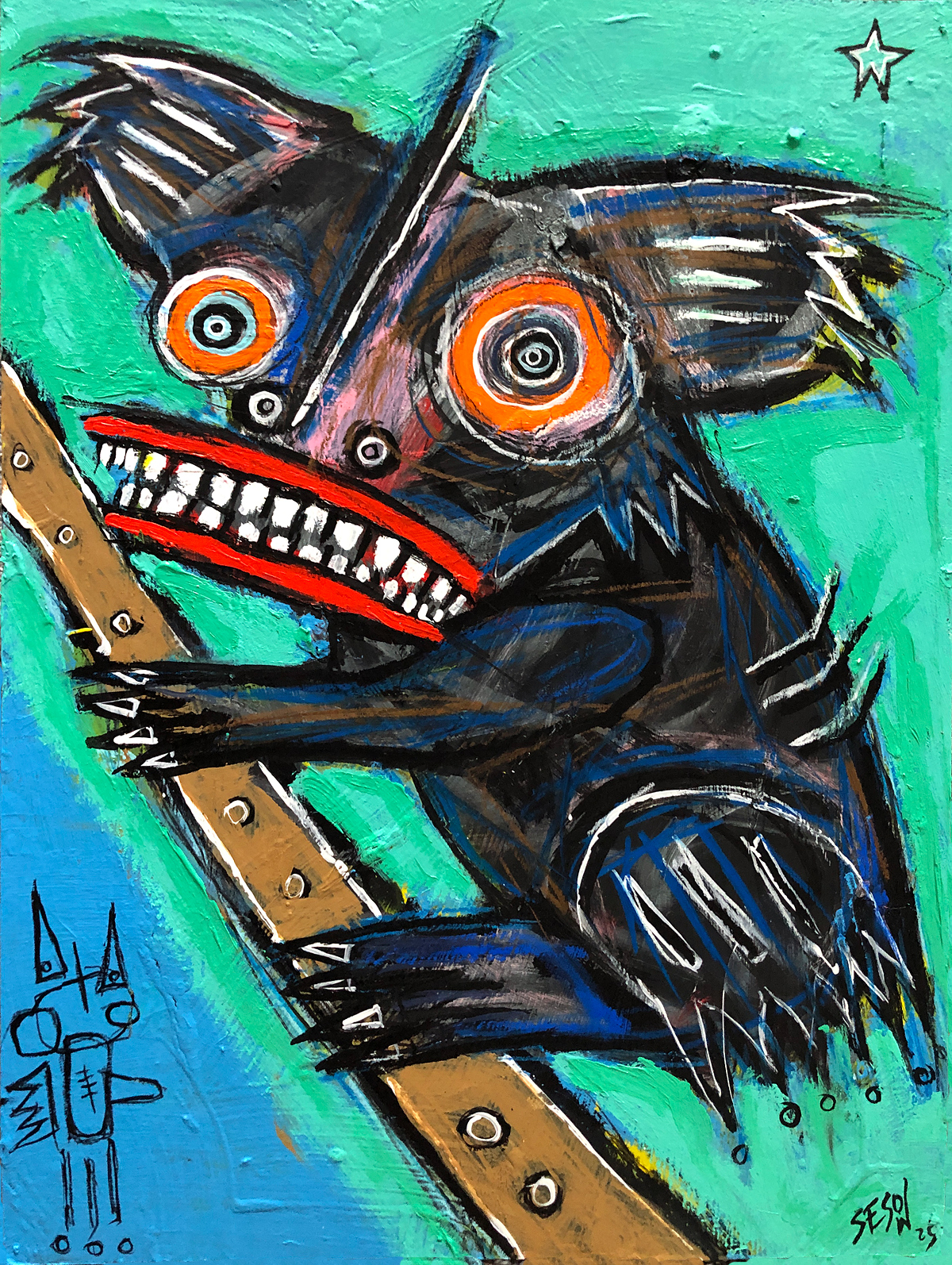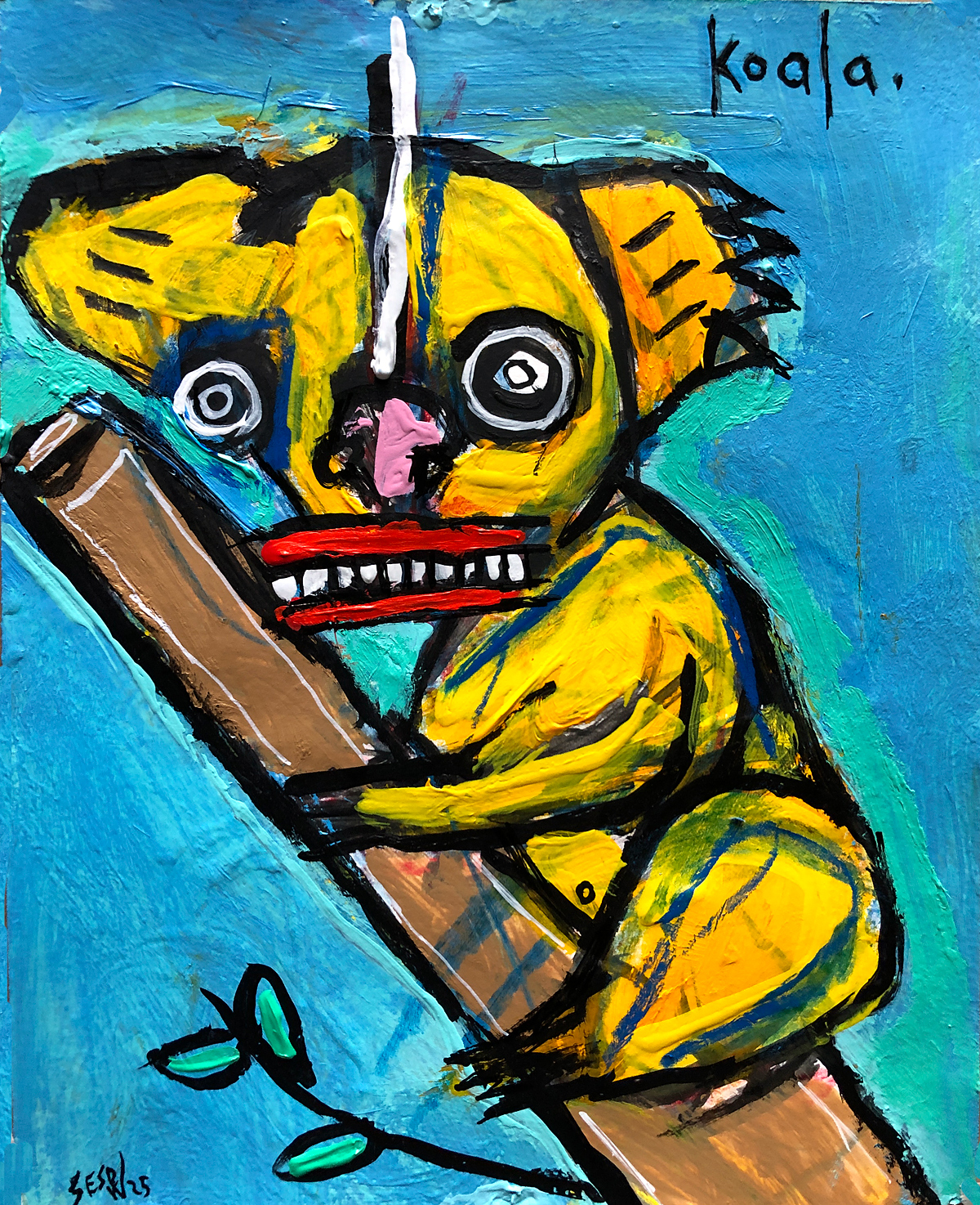 "Koala, on branch" acrylic/mix on cardboard 18" x 24" $160 email sesow@sesow.com to reserve/ask about purchasing. please include url and description. |