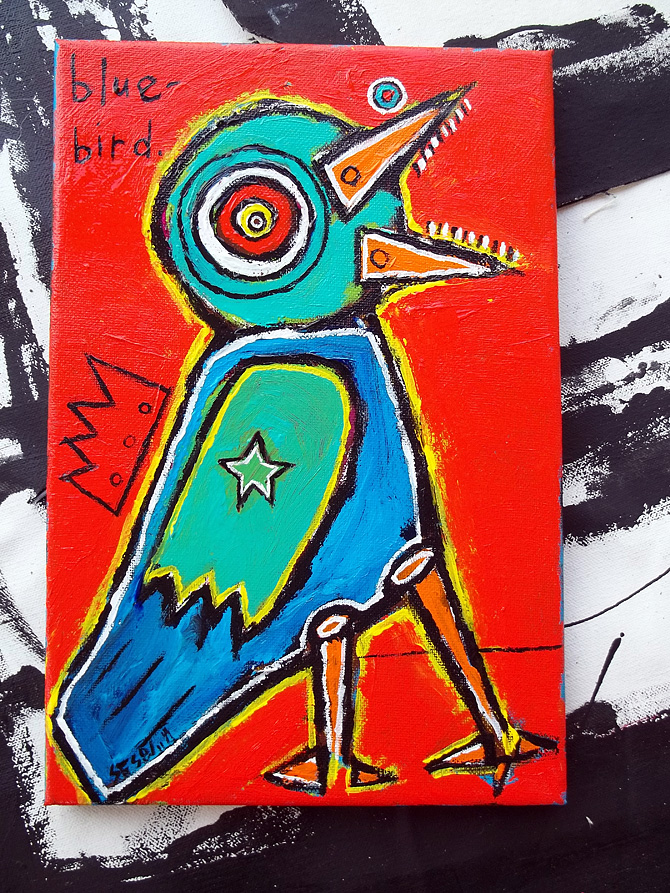 "Blue Bird" Made in Spain (October 2011) acrylic/mix on stretched canvas approx 16" x 12" *SOLD |