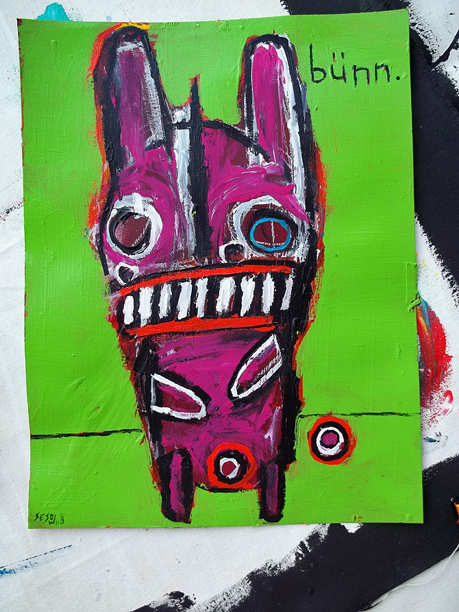 "bunn" Made in Spain (October 2011) acrylic/mix on archival paper approx 11"x 14" $80 |