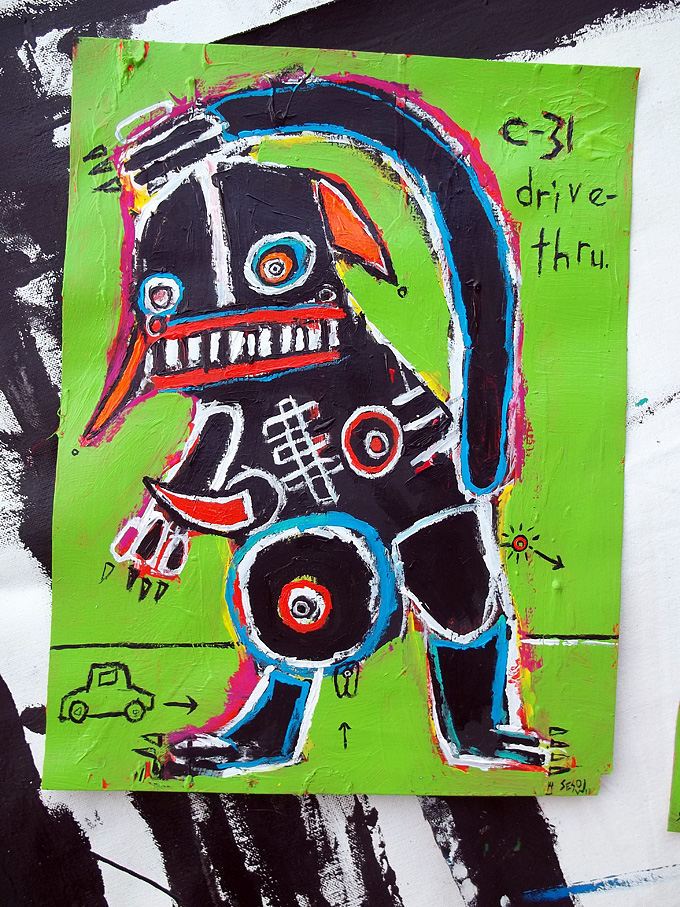"C-31 Drive-thru" Made in Spain (October 2011) acrylic/mix on archival paper approx 11"x 14" currently represented at Gallery Artevistas in Barcelona, Spain they ship internationally, contact them here |