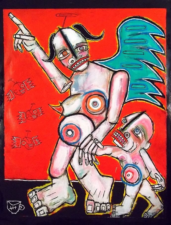 "Robin" Made in Spain (October 2011) acrylic/mix on stretched canvas approx 16" x 12" currently represented at Gallery Artevistas in Barcelona, Spain they ship internationally, contact them here |