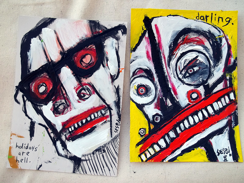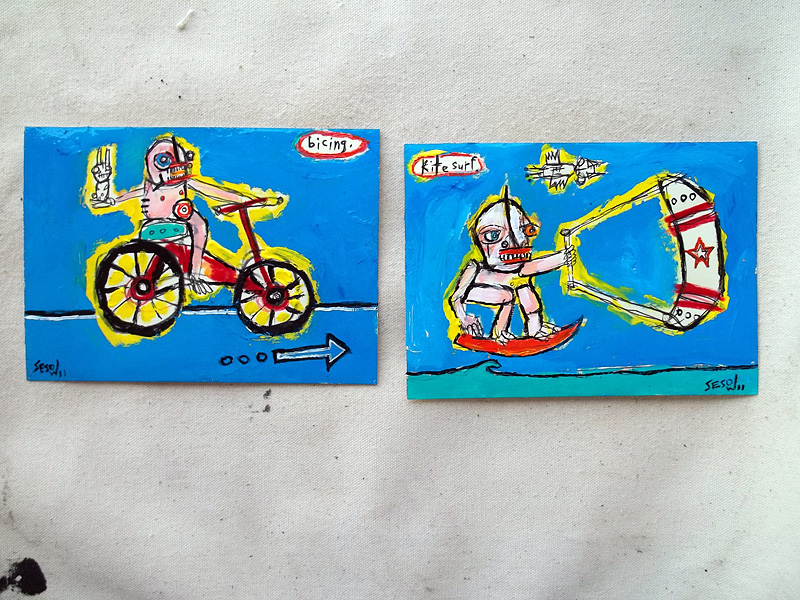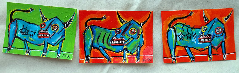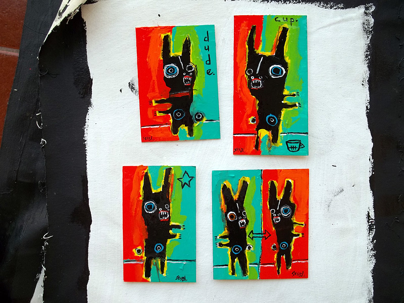 small october 2011 original paintings Made in Spain (October 2011) acrylic/mix on paper or matboard approx 4" x 6" currently represented at Gallery Artevistas in Barcelona, Spain they ship internationally, contact them here |