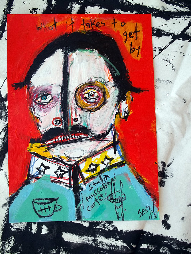 "Do What it Takes" Made in Spain (October 2011) acrylic/mix on archival paper approx 11"x 14" currently represented at Gallery Artevistas in Barcelona, Spain they ship internationally, contact them here |