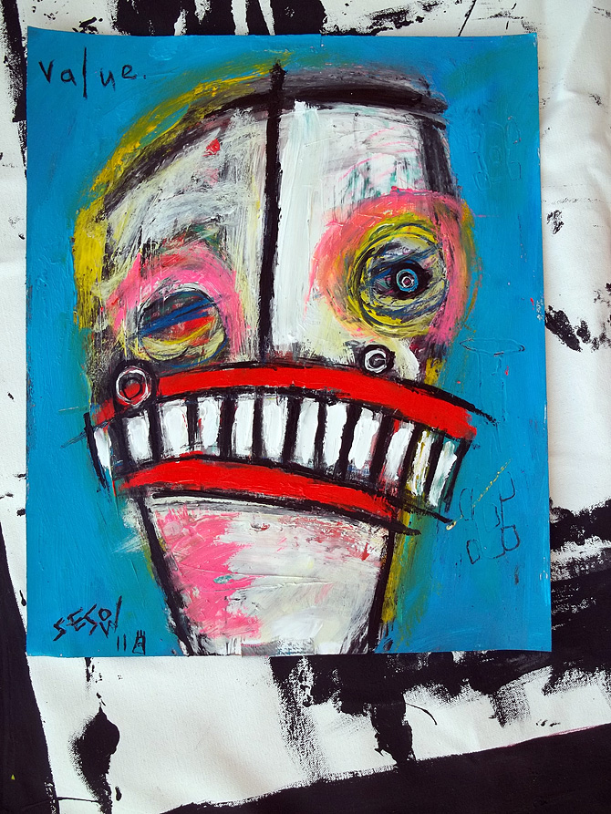 "Value" Made in Spain (October 2011) acrylic/mix on archival paper 22" x 15" currently represented at Gallery Artevistas in Barcelona, Spain they ship internationally, contact them here |