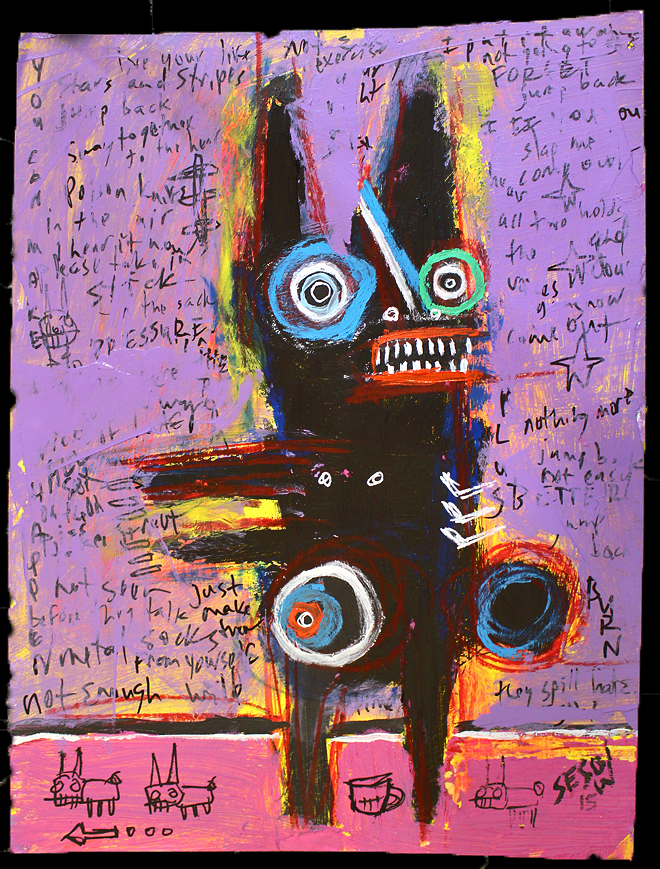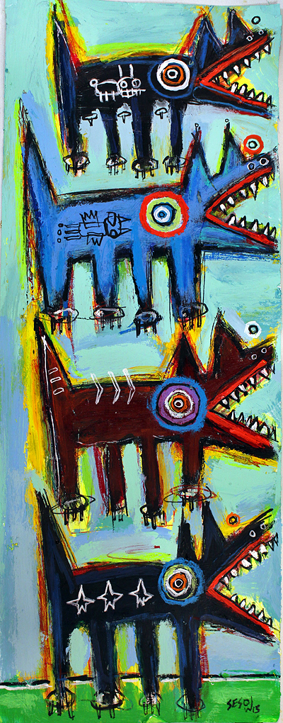 "Pack of Dogs" acrylic/mix on archival paper 26" x 10" *SOLD email sesow@sesow.com to reserve/ask about purchasing. please include url and description. |