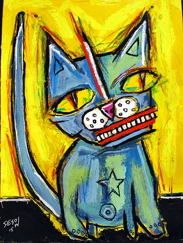 "Cat (6)" acrylic on bristol paper 9" x 12" *SOLD email sesow@sesow.com to reserve/ask about purchasing. please include url and description. |