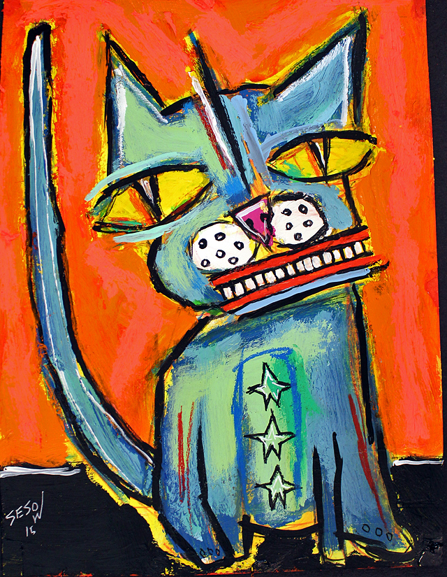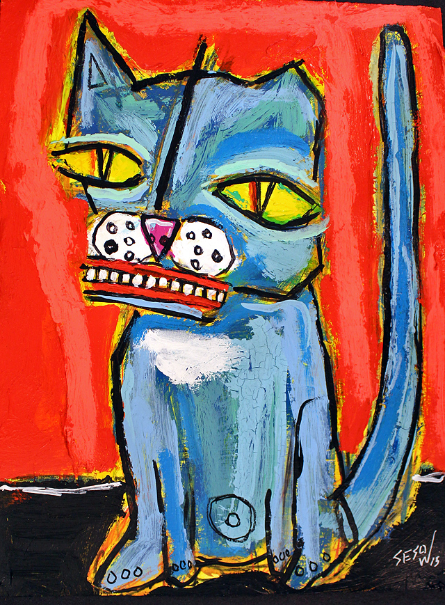 "Cat (7)" acrylic on bristol paper 9" x 12" *SOLD email sesow@sesow.com to reserve/ask about purchasing. please include url and description. |