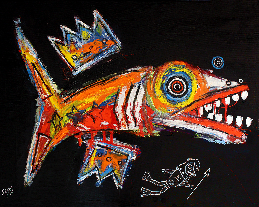 "Swimming with the Fish" acrylic/oil on stretched canvas 16" x 20 *SOLD email sesow@sesow.com to reserve/ask about purchasing. please include url and description. |