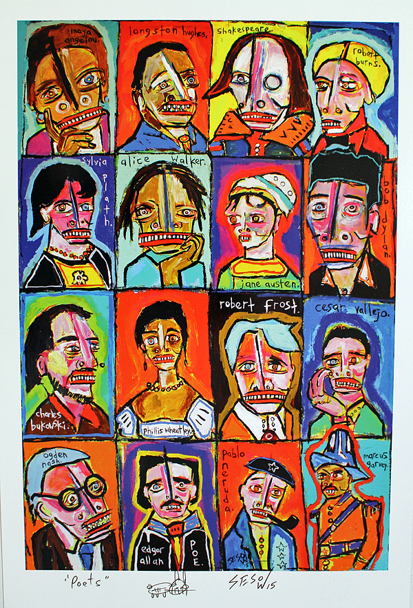 Print/Poster of 2015 painting "Poets" Glossy on 100lb durable card stock 11"x17" signed, icon added,'trauma cup with signature' watermark, etc. BOATIN PARTY PRINT #1 BOATIN PARTY PRINT #2 POETS PRINT #1 POETS PRINT #2 POETS PRINT #3 |