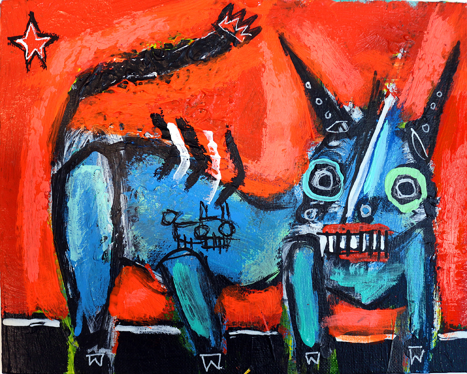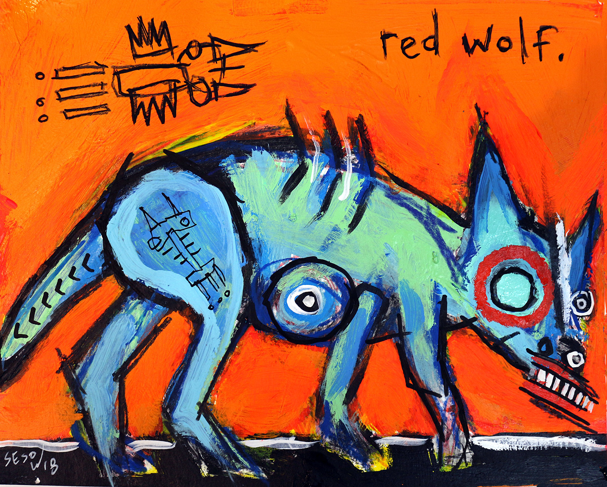 "Red Wolf" acrylic/mix on archival paper 8" x 10" >*SOLD email sesow@sesow.com to reserve/ask about purchasing. please include url and description. |